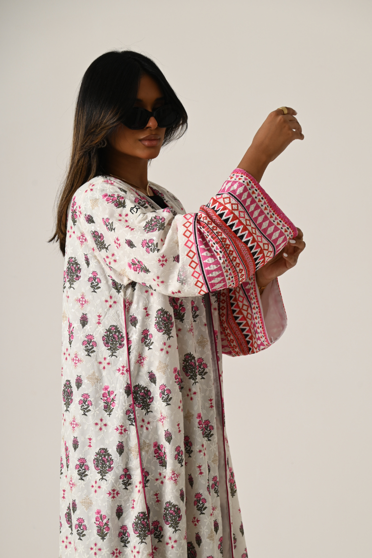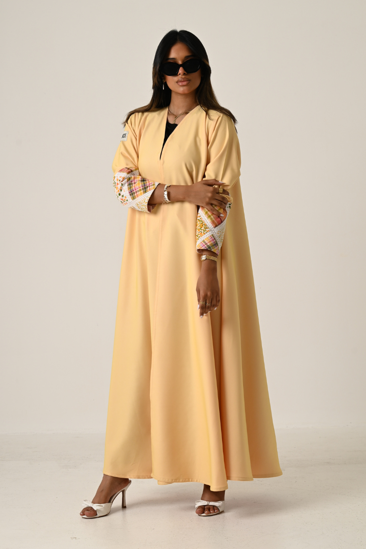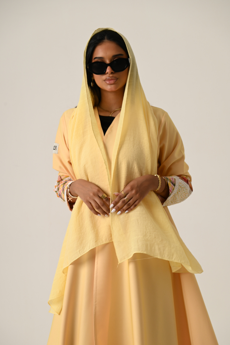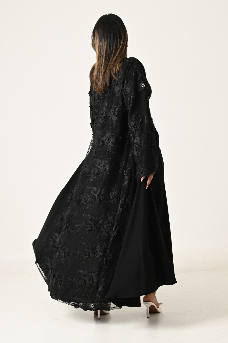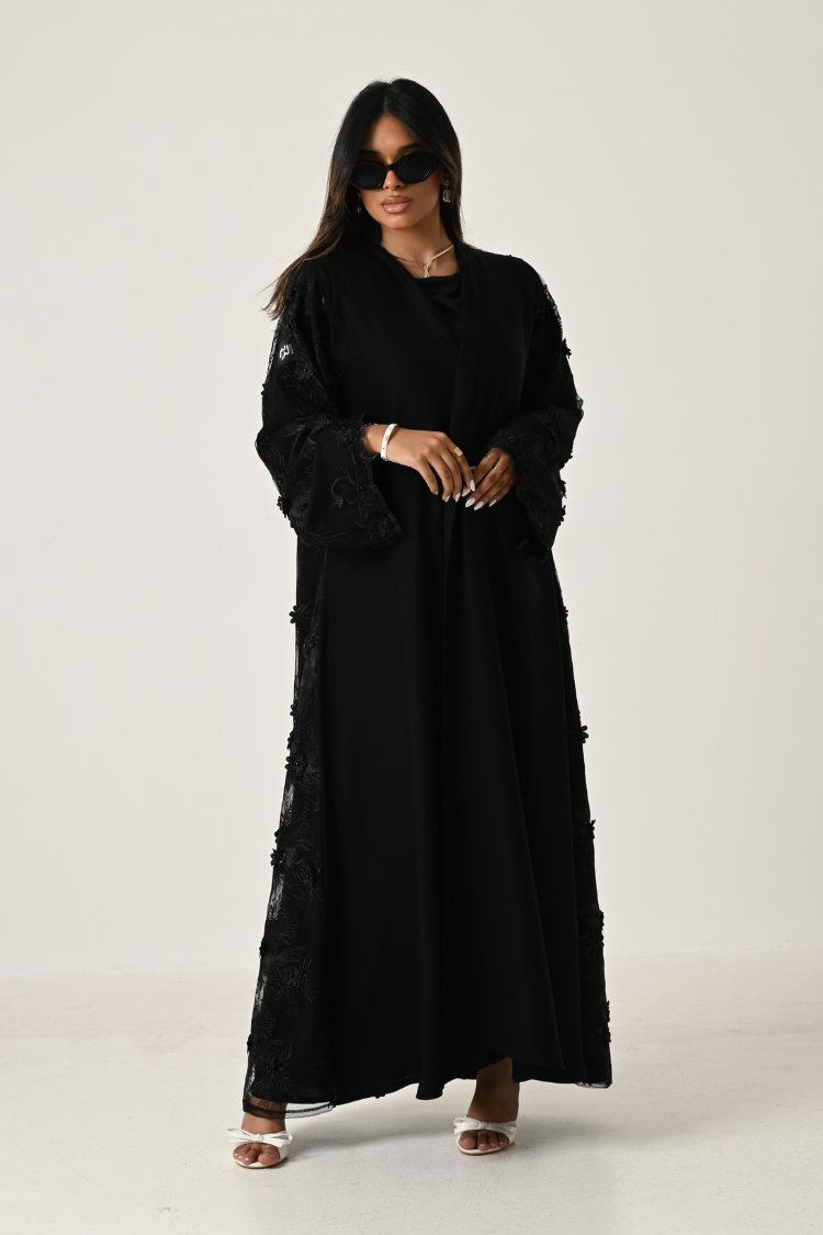عباية لنن مطرز مبطن بشيفون