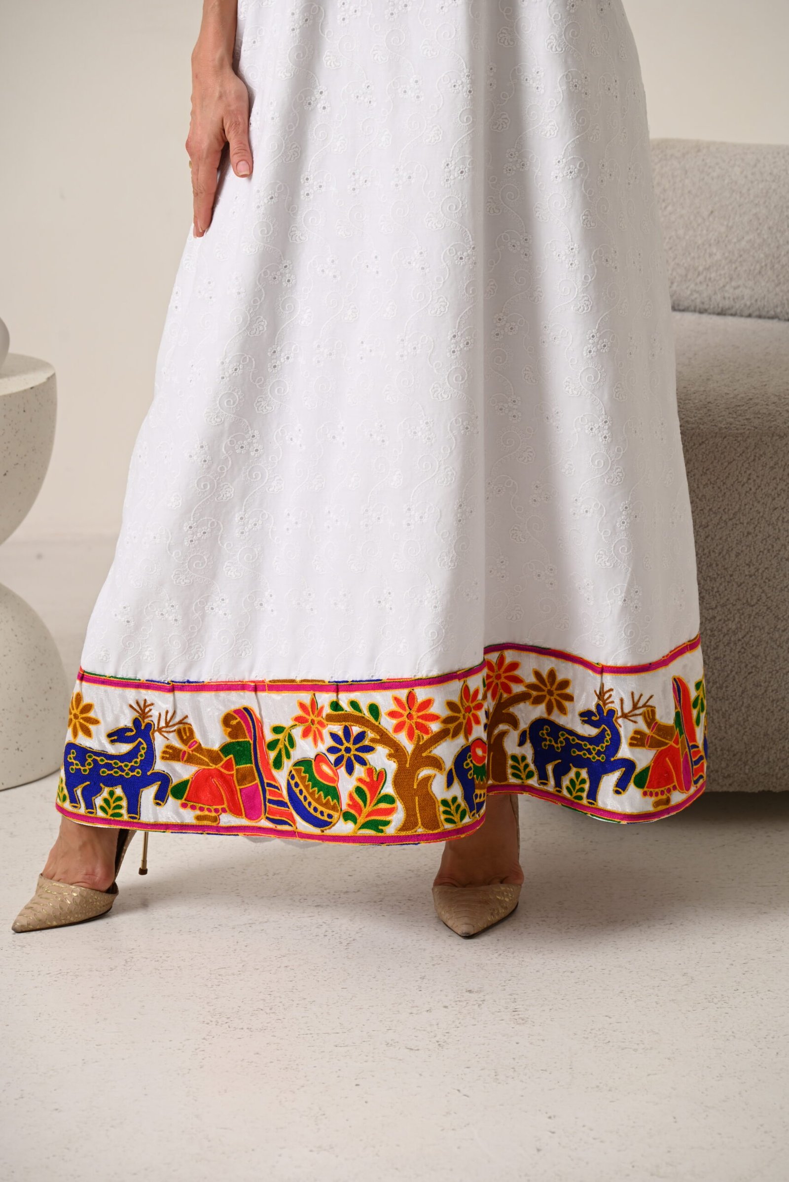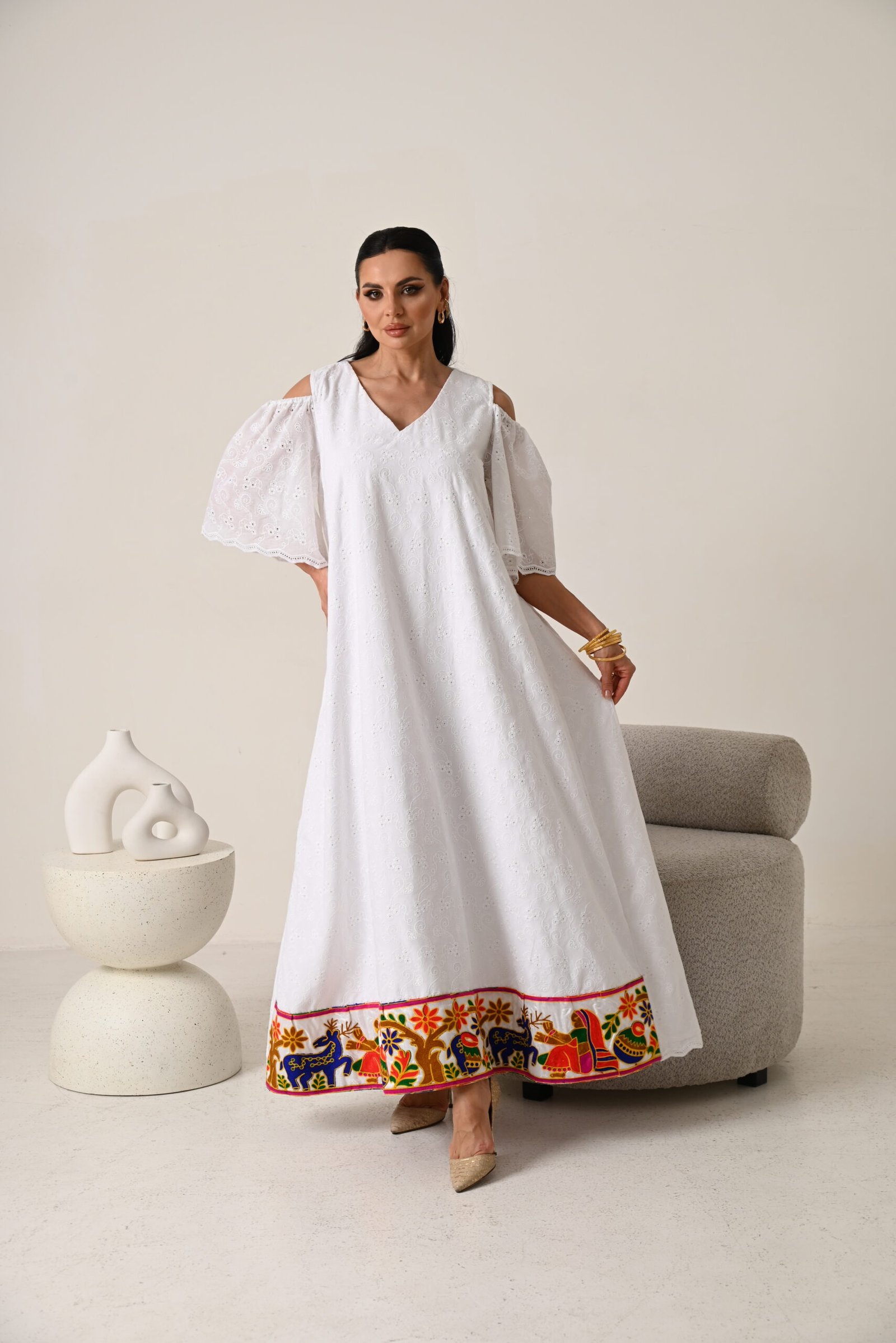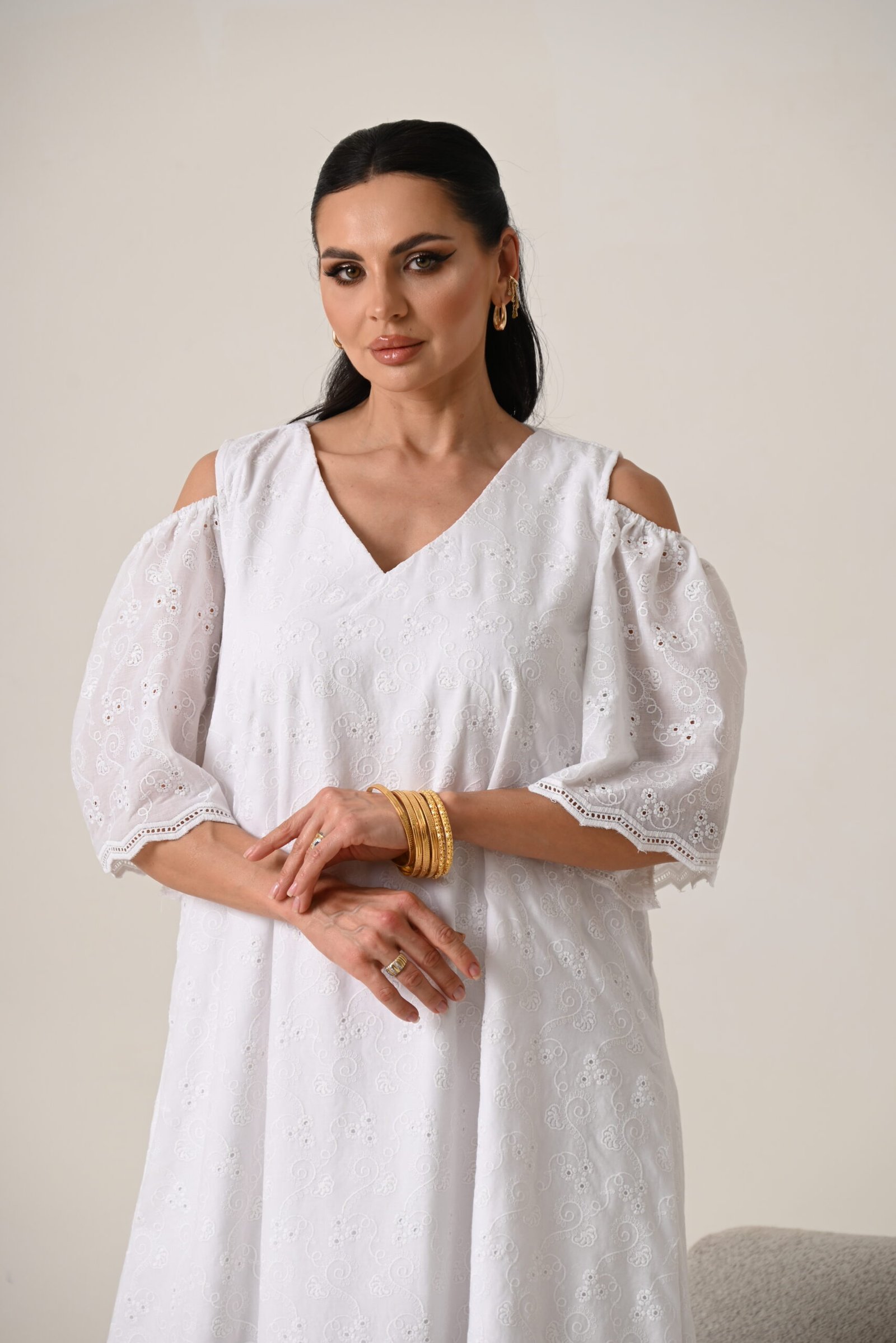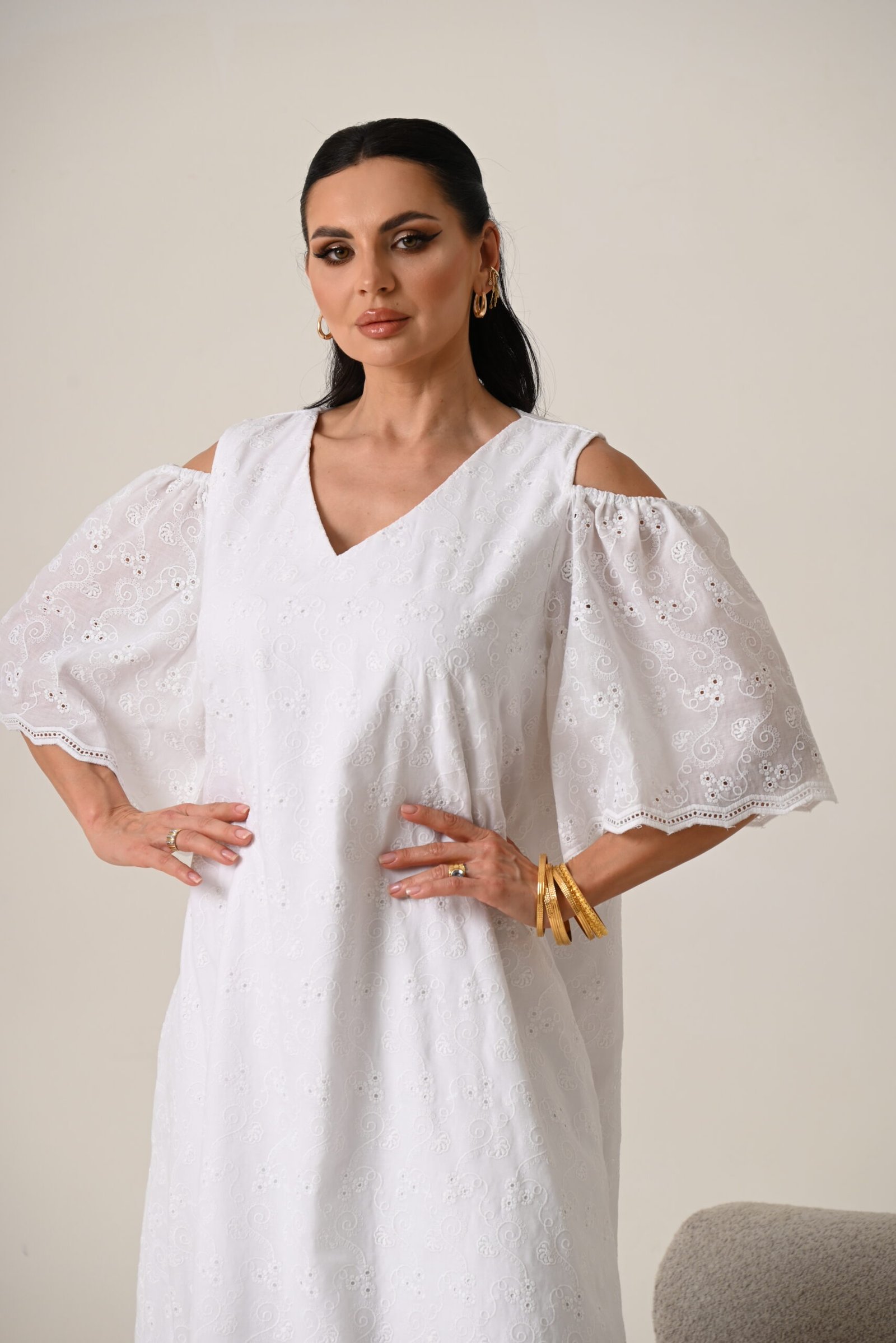 • جلابية بيضاء بنقوش متقنة تضيف لمسة فنية تزيد من جاذبية الجلابية