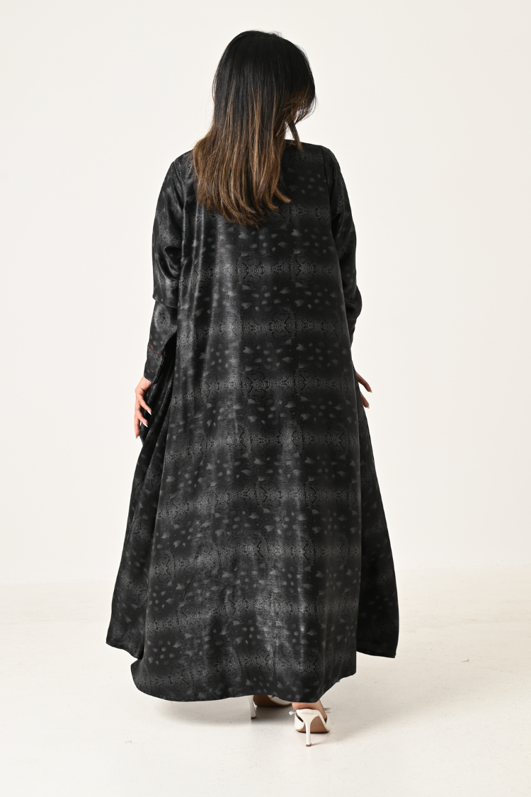 تميّزي بإطلالة راقية مع عباية كريب حرير مشجّرة ومبطّنة بالشيفون، تصميم أنثوي فاخر يجمع بين النعومة والفخامة، مثالية للمناسبات الخاصة والإطلالات اليومية الراقية.